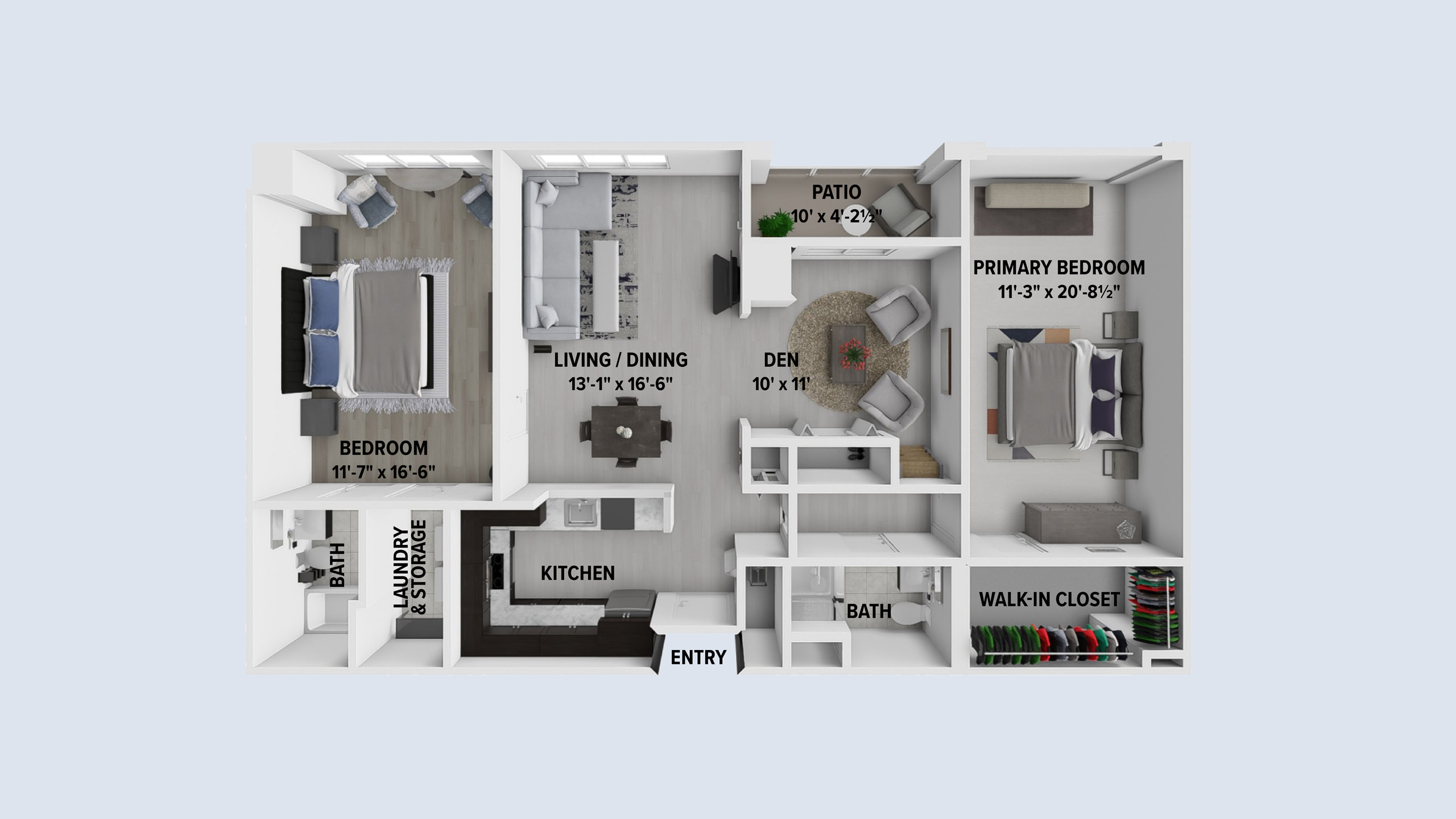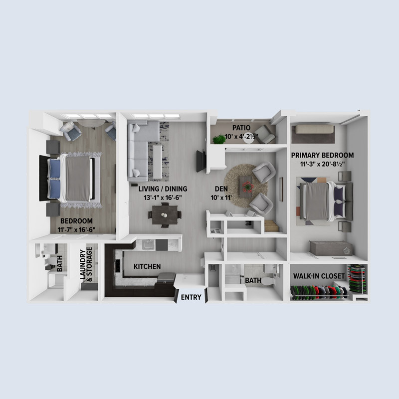 Live in luxury in our 1,200-square-foot apartment home of remodeled living space. Features of this gorgeous floor plan include a spacious primary suite and an oversized second bedroom. In addition, the Waldorf boasts a generous outdoor space, dedicated laundry room, vaulted ceilings and four closets for an abundance of storage.